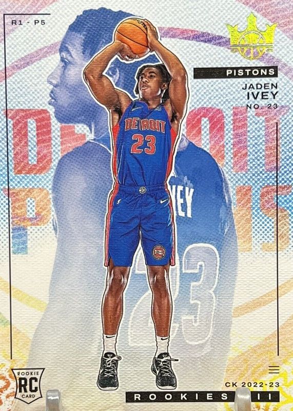This card is 1 of 7 Jaden Ivey's card variations in the 2022 Court Kings set being tracked by Sports Card Investor, including Rookies I, Rookies II, Rookies IV, Fresh Paint Autographs /199, and Aurora /(SSP).