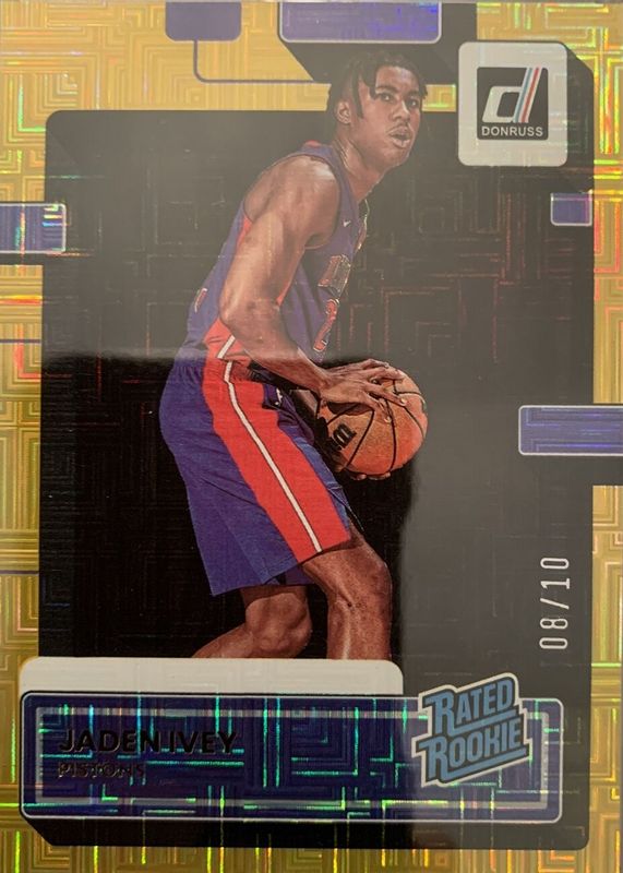 The Jaden Ivey 2022 Donruss #205 Choice Gold /10 Rookie card in Raw condition has not changed in price in the last 30 days and was last sold for $64.00 .