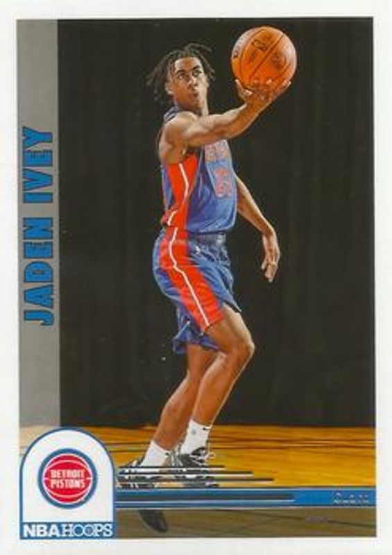The Jaden Ivey 2022 Hoops #285 Base Rookie card is 1 of 79 Jaden Ivey's card variations in the 2022 Hoops set being tracked by Sports Card Investor, including #235 Base, #285 Tribute, #235 Blue, #285 Blue, and #235 Hyper Blue.