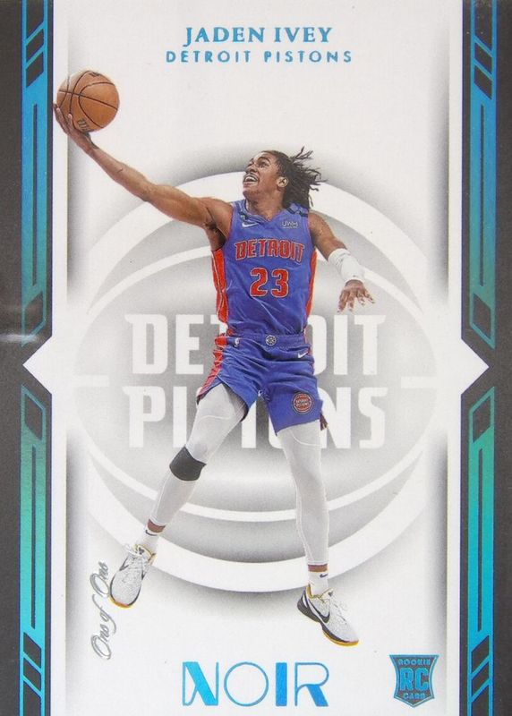 This card is 1 of 21 Jaden Ivey's card variations in the 2022 Noir set being tracked by Sports Card Investor, including Association Edition /99, Icon Edition /99, Statement Edition /25, Association Edition - Holo Silver /49, and Icon Edition - Holo Silver /49.