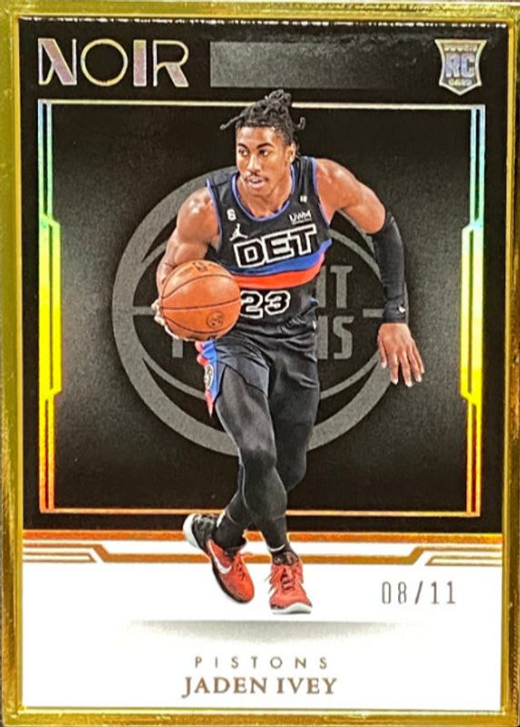 This card is 1 of 21 Jaden Ivey's card variations in the 2022 Noir set being tracked by Sports Card Investor, including Association Edition /99, Icon Edition /99, Statement Edition /25, Association Edition - Holo Silver /49, and Icon Edition - Holo Silver /49.