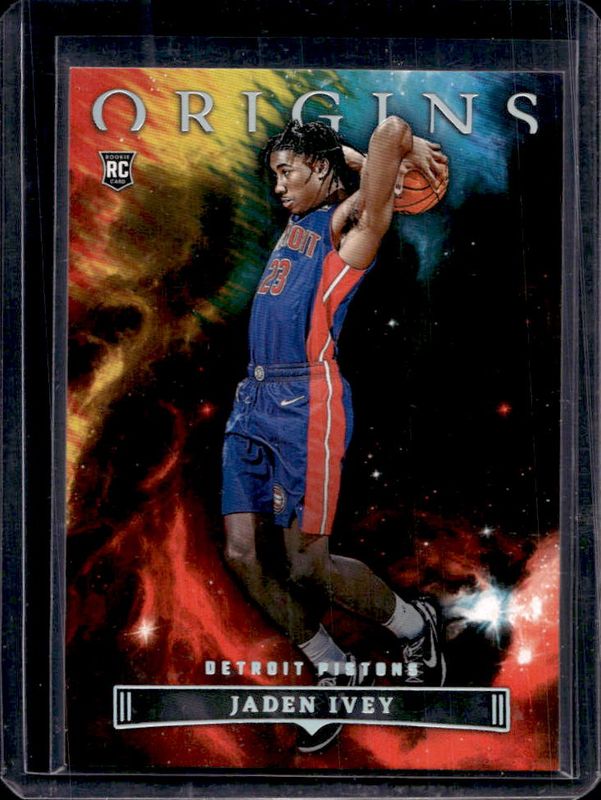 The Jaden Ivey 2022 Origins #11 Red Rookie card is 1 of 54 Jaden Ivey's card variations in the 2022 Origins set being tracked by Sports Card Investor, including #11 Base, #11b Base, #11 Basketball, #11 Knight, and #11 White.