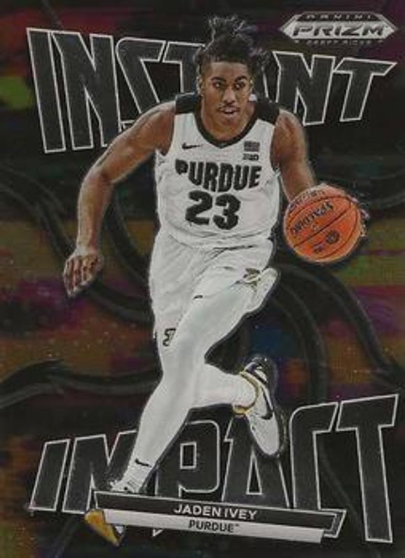 The Jaden Ivey 2022 Prizm Draft Picks #II-JI Instant Impact - Silver Rookie card is 1 of 159 Jaden Ivey's card variations in the 2022 Prizm Draft Picks set being tracked by Sports Card Investor, including #53 Base, #53b Base, #53 Blue Circles, #53 Choice Blue Yellow & Green, and #53b Choice Blue Yellow & Green.