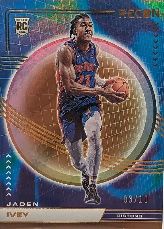 This card is 1 of 55 Jaden Ivey's card variations in the 2022 Recon set being tracked by Sports Card Investor, including Base, Holo, Pink, Bronze /299, and Red /199.