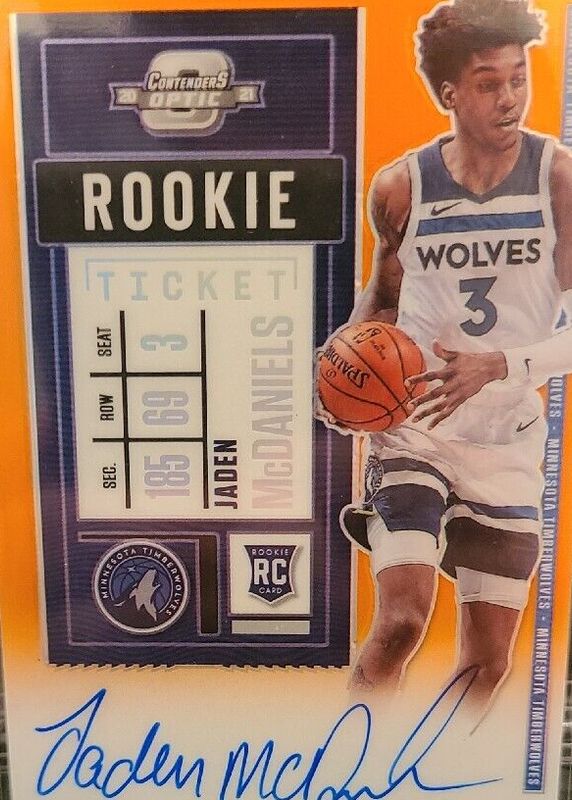 2020-21 Optic Contenders Jaden McDaniels Orange Rookie Ticket Auto # 1/25 RC SSP