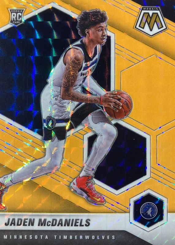 This card is 1 of 39 Jaden McDaniels' card variations in the 2020 Mosaic set being tracked by Sports Card Investor, including Base, Fast Break, Gold Wave, Green, and Green Ice.