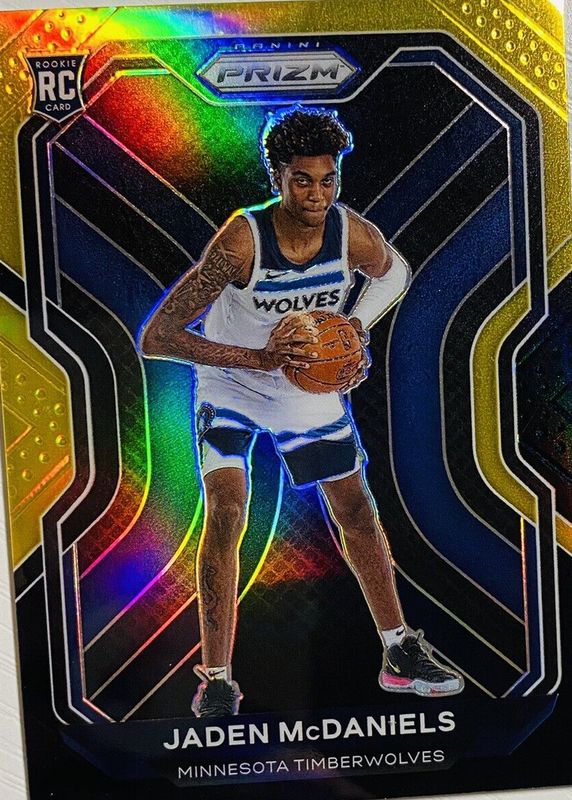 The Jaden McDaniels 2020 Prizm #277 Black Gold /5 Rookie card in Raw condition has not changed in price in the last 30 days and was last sold for $700.00 .