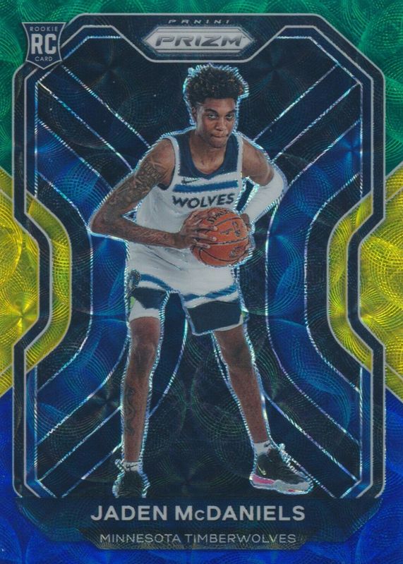 2020-21 Prizm Jaden McDaniels RC Choice Blue, Yellow and Green Prizm #277