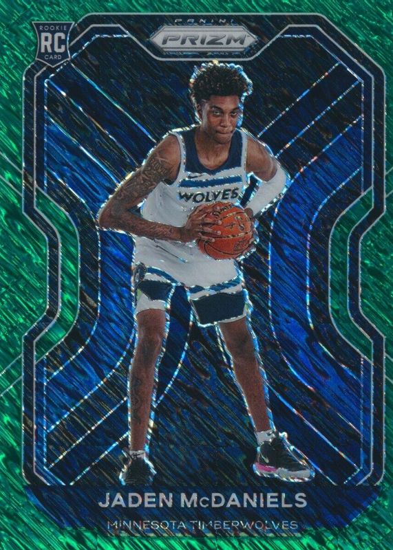 This card is 1 of 63 Jaden McDaniels' card variations in the 2020 Prizm set being tracked by Sports Card Investor, including Base, Choice Blue Yellow Green, Fast Break, Green, and Green Ice.
