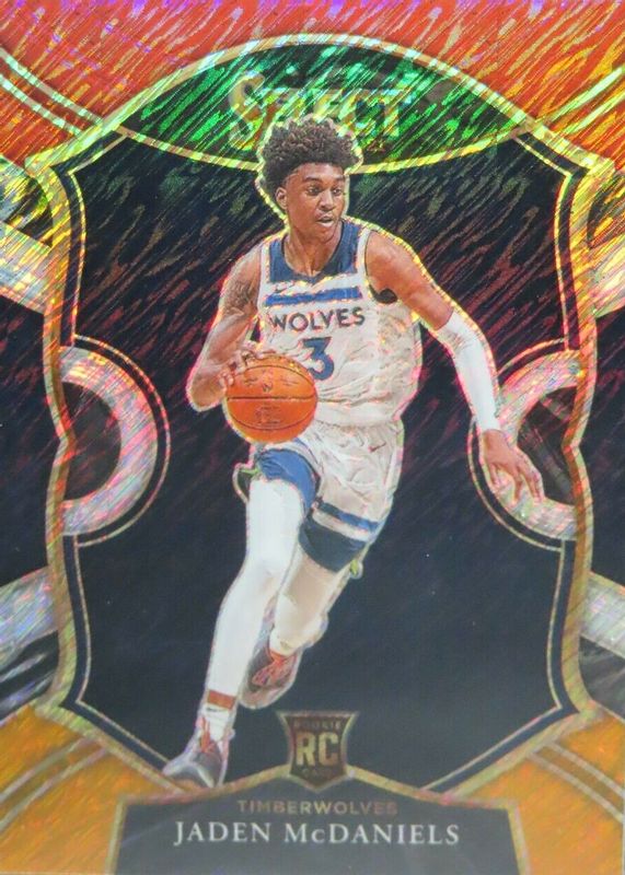 2020-21 Panini Select #88 Jaden McDaniels Red White Orange Shimmer RC