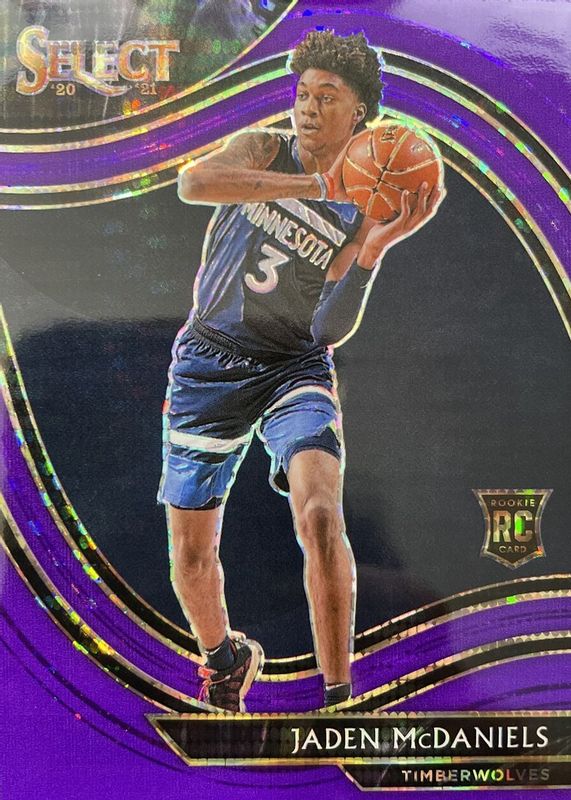 This card is 1 of 135 Jaden McDaniels' card variations in the 2020 Select set being tracked by Sports Card Investor, including Concourse, Courtside, Premier Level, Concourse Blue Prizm, and Concourse Blue Retail.