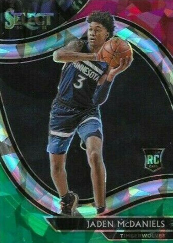 2020-21 Select Jaden McDaniels Cracked Ice Red White & Green Courtside Prizm