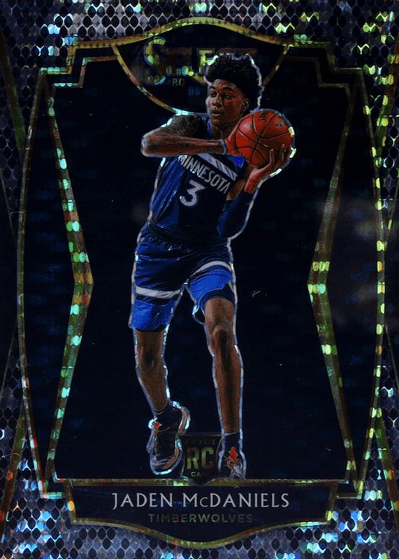 This card is 1 of 135 Jaden McDaniels' card variations in the 2020 Select set being tracked by Sports Card Investor, including Concourse, Courtside, Premier Level, Concourse Blue Prizm, and Concourse Blue Retail.