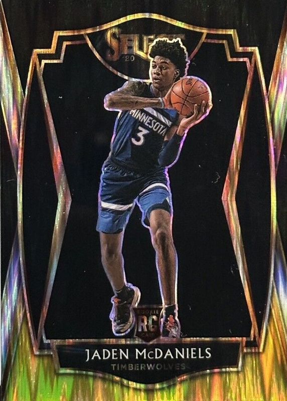 This card is 1 of 135 Jaden McDaniels' card variations in the 2020 Select set being tracked by Sports Card Investor, including Concourse, Courtside, Premier Level, Concourse Blue Prizm, and Concourse Blue Retail.