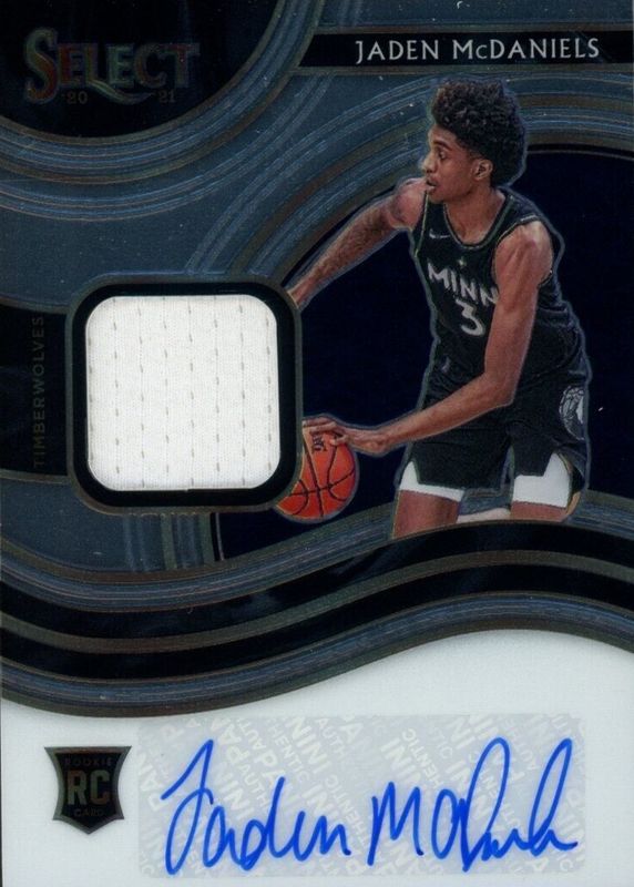 2020-21 Panini Select Jaden McDaniels #RJA-JAD RC Jersey Patch Auto /199