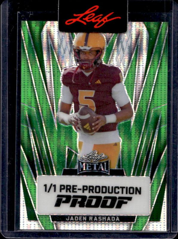 Jaden Rashada 2024 Leaf Metal Pulsar Green Pre Production Proofs /1 RAW Price Guide