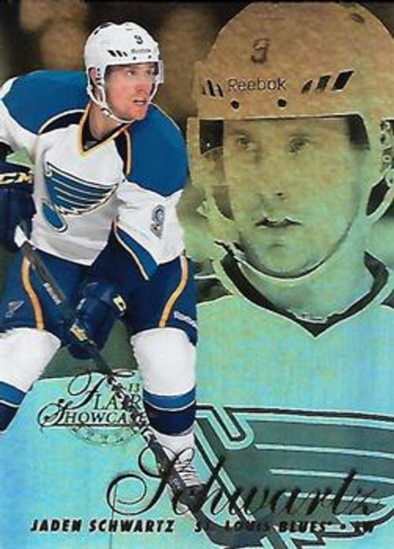 The Jaden Schwartz 2012 Fleer Retro #30 Flair Showcase Row 2 Rookie card is 1 of 19 Jaden Schwartz's card variations in the 2012 Fleer Retro set being tracked by Sports Card Investor, including 1994 Ultra, 1994 Ultra Autographs, Autographics 1999, Diamond Tribute, and E X 2001.