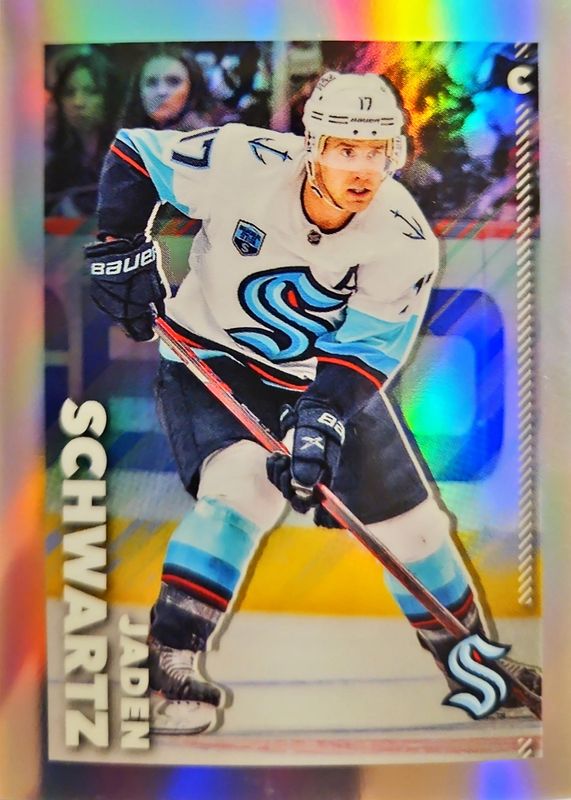 This card is 1 of 6 Jaden Schwartz's card variations in the 2022 Topps Chrome NHL Sticker Collection set being tracked by Sports Card Investor, including Base, Gold Refractor /50, Orange Refractor /25, Red Refractor /5, and Superfractor /1.