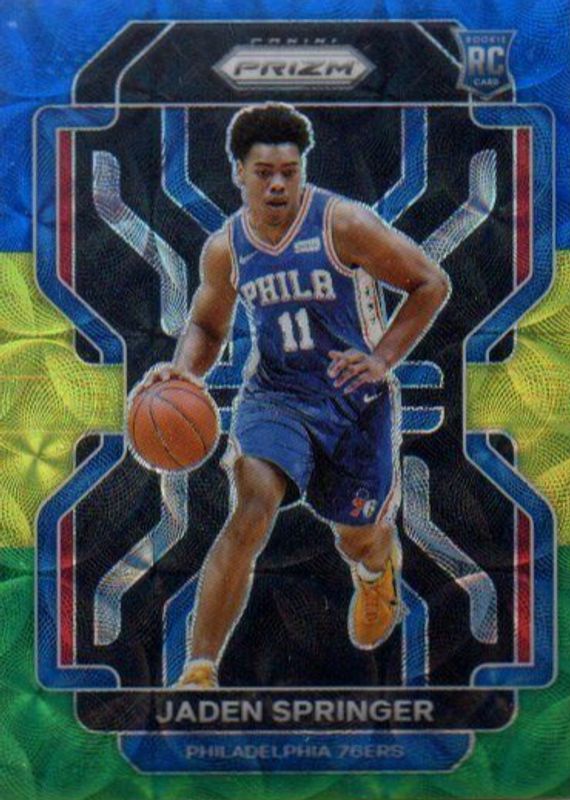 2021-22 Prizm Jaden Springer Blue Yellow Green Choice Prizm Rookie RC #317 76ers