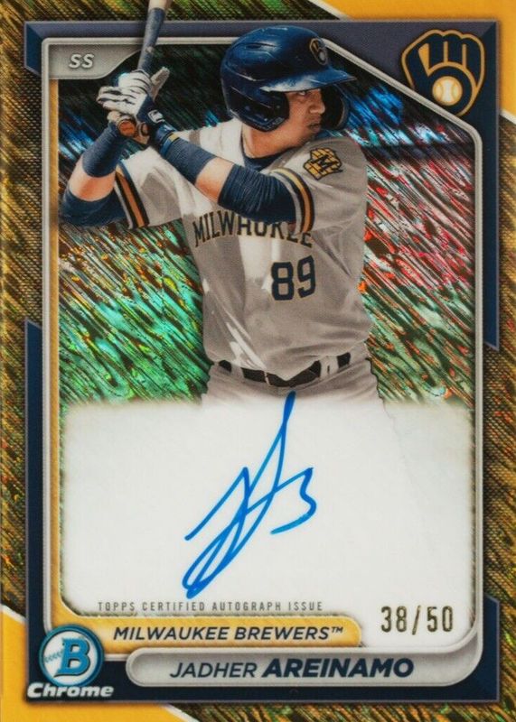 Jadher Areinamo 2024 Bowman #CPA-JA Chrome Prospect Auto - Gold Shimmer Refractor /50 RAW Price Guide