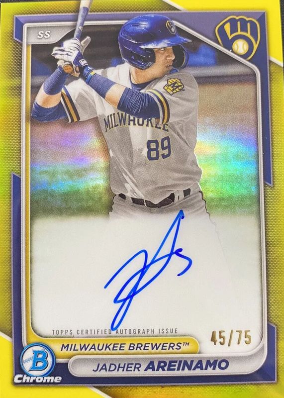 2024 Bowman Chrome Jadher Areinamo Yellow Auto /75 #CPA-JA Brewers