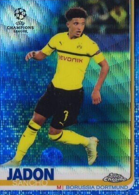 Jadon Sancho 2018 Topps Chrome UEFA Champions League #86 Blue Wave Refractor /75 Rookie RAW Price Guide