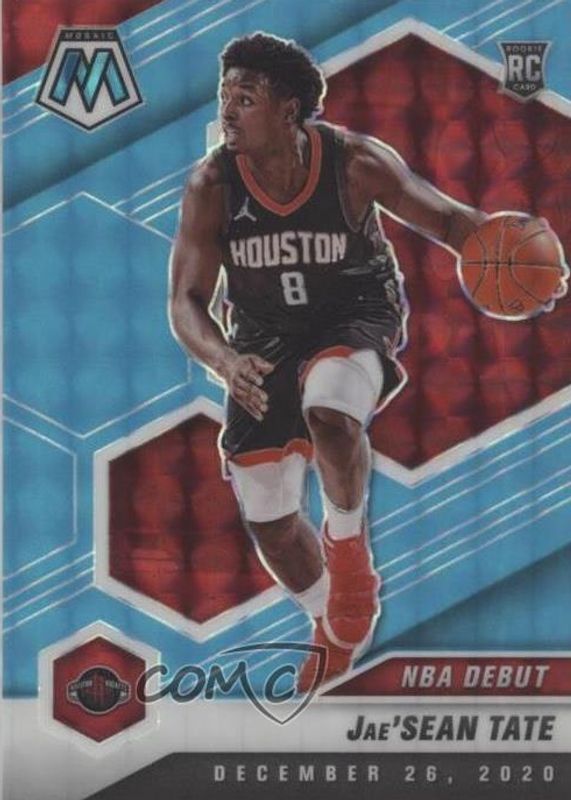 The Jae'Sean Tate 2020 Mosaic #265 NBA Debut - Blue Fluorescent /15 Rookie card in Raw condition has not changed in price in the last 30 days and was last sold for $30.10 .
