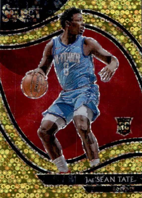 This card is 1 of 34 Jae'Sean Tate's card variations in the 2020 Select set being tracked by Sports Card Investor, including Courtside, Courtside Blue Prizm, Courtside Blue Retail, Courtside Blue White Purple Cracked Ice, and Courtside Disco.