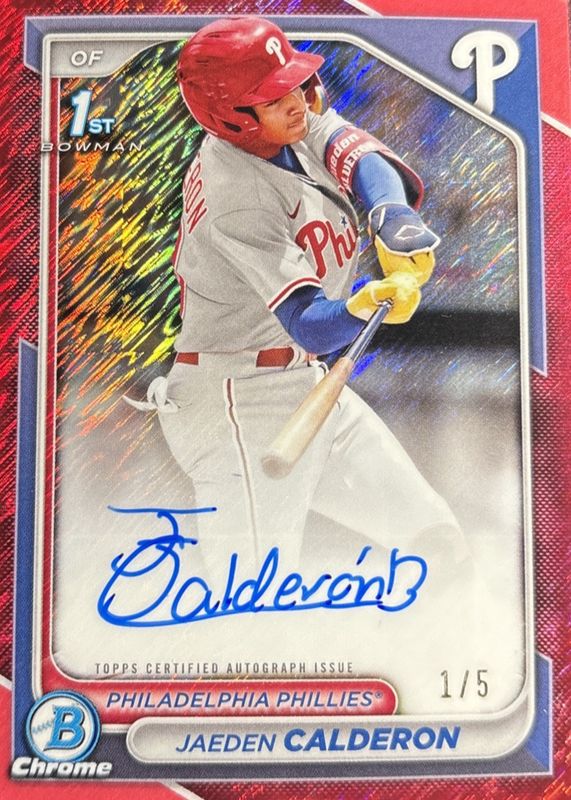 Jaeden Calderon 2024 Bowman Chrome #CPA-JCN Prospect Auto - Red Shimmer Refractor /5 (1st) RAW Price Guide