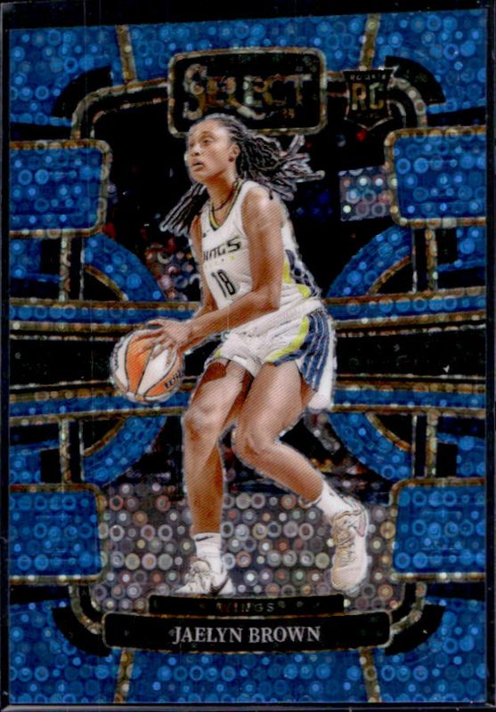 The Jaelyn Brown 2024 Select WNBA #4 Base Light Blue Disco /125 Rookie card is 1 of 61 Jaelyn Brown's card variations in the 2024 Select WNBA set being tracked by Sports Card Investor, including #181 Base, #4 Base, #181 Base Green Ice, #4 Base Green Ice, and #4 Base Pink Ice.