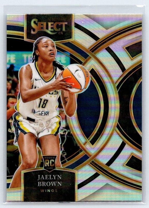 The Jaelyn Brown 2024 Select WNBA #181 Base Silver Rookie card is 1 of 61 Jaelyn Brown's card variations in the 2024 Select WNBA set being tracked by Sports Card Investor, including #181 Base, #4 Base, #181 Base Green Ice, #4 Base Green Ice, and #4 Base Pink Ice.