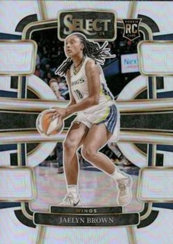 The Jaelyn Brown 2024 Select WNBA #4 Base Silver Flash Rookie card is 1 of 61 Jaelyn Brown's card variations in the 2024 Select WNBA set being tracked by Sports Card Investor, including #181 Base, #4 Base, #181 Base Green Ice, #4 Base Green Ice, and #4 Base Pink Ice.
