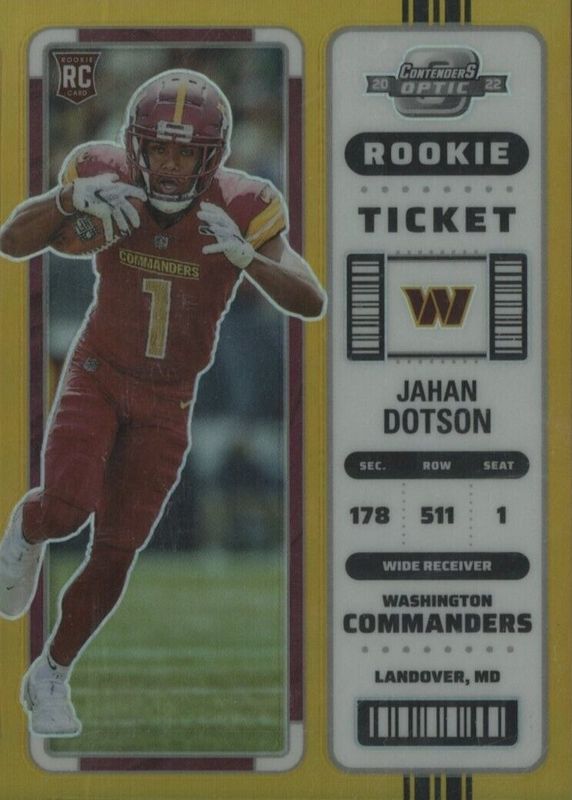 Jahan Dotson 2022 Contenders Optic #77 Gold /10 Rookie RAW Price Guide