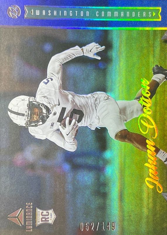 This card is 1 of 9 Jahan Dotson's card variations in the 2022 Luminance set being tracked by Sports Card Investor, including Base, Gold /249, Green /99, Orange /50, and Teal /35.