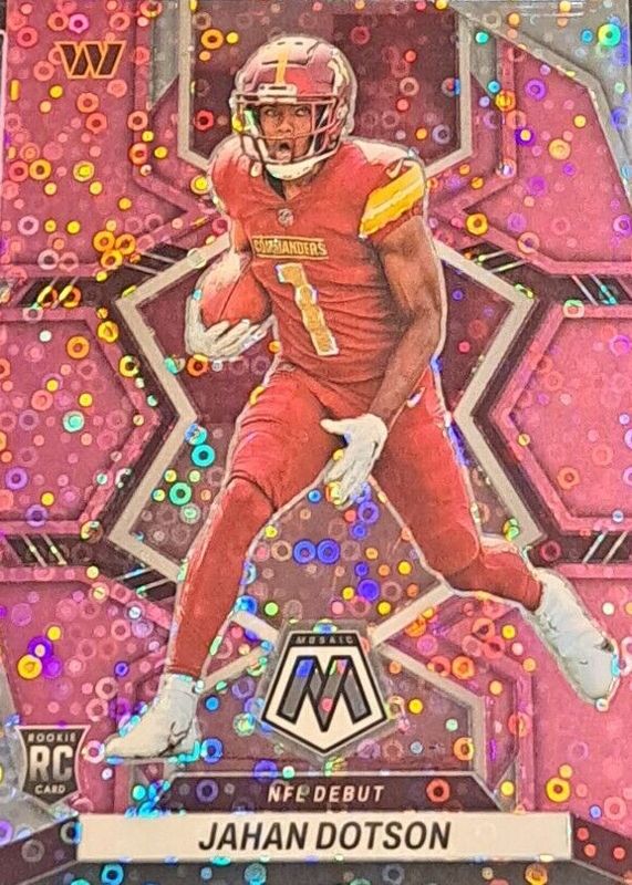 Auctions Ending Soon for Jahan Dotson 2022 Mosaic #280 NFL Debut - No Huddle Pink /20 Rookie RAW