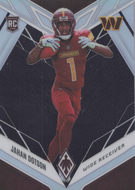 This card is 1 of 27 Jahan Dotson's card variations in the 2022 Phoenix set being tracked by Sports Card Investor, including Base, Color Burst, Onyx (/5), Red Mojo (/10), and Silver.