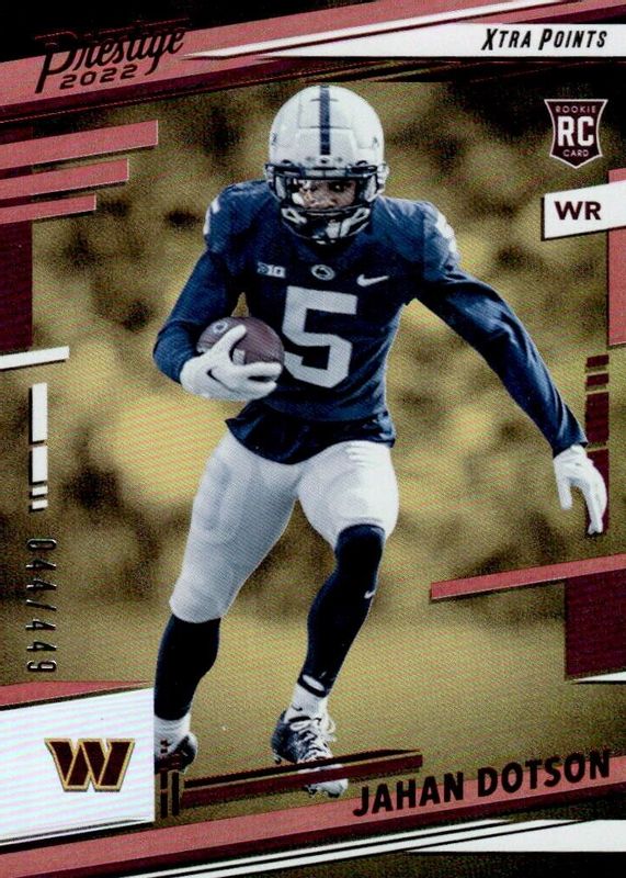 This card is 1 of 27 Jahan Dotson's card variations in the 2022 Prestige set being tracked by Sports Card Investor, including Base, Xtra Points Astral, Xtra Points Diamond, Xtra Points Dots, and Xtra Points Galaxy.