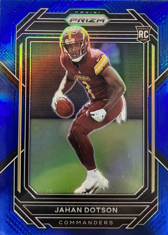 The Jahan Dotson 2022 Prizm #312 Blue /(SSP) Rookie card in Raw condition has not changed in price in the last 30 days and was last sold for $20.00 .