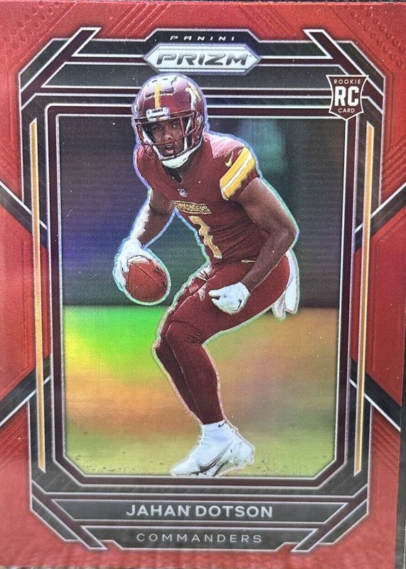 The Jahan Dotson 2022 Prizm #312 Red /(SSP) Rookie card in Raw condition has not changed in price in the last 30 days and was last sold for $8.51 .