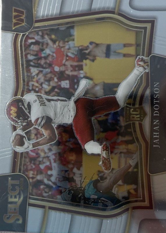 This card is 1 of 45 Jahan Dotson's card variations in the 2022 Select set being tracked by Sports Card Investor, including Suite Level, Field Level Silver, Suite Level Disco, Suite Level Silver, and Suite Level Tri-Color /149.