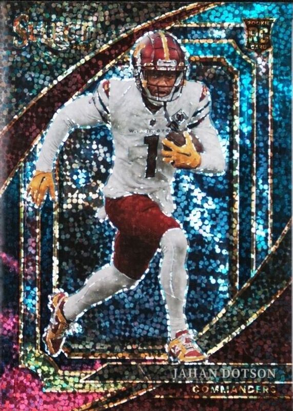 This card is 1 of 45 Jahan Dotson's card variations in the 2022 Select set being tracked by Sports Card Investor, including Field Level, Suite Level, Field Level Silver, Suite Level Disco, and Suite Level Silver.