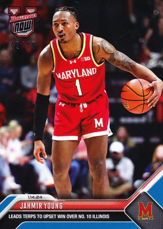 This card is 1 of 6 Jahmir Young's card variations in the 2023 Bowman U Now set being tracked by Sports Card Investor, including Base (Print Run: 236), Purple /25, Red /10, Orange /5, and Gold /1.