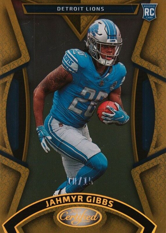 Jahmyr Gibbs 2023 Certified #184 FOTL Mirror Gold /15 Rookie RAW Price Guide