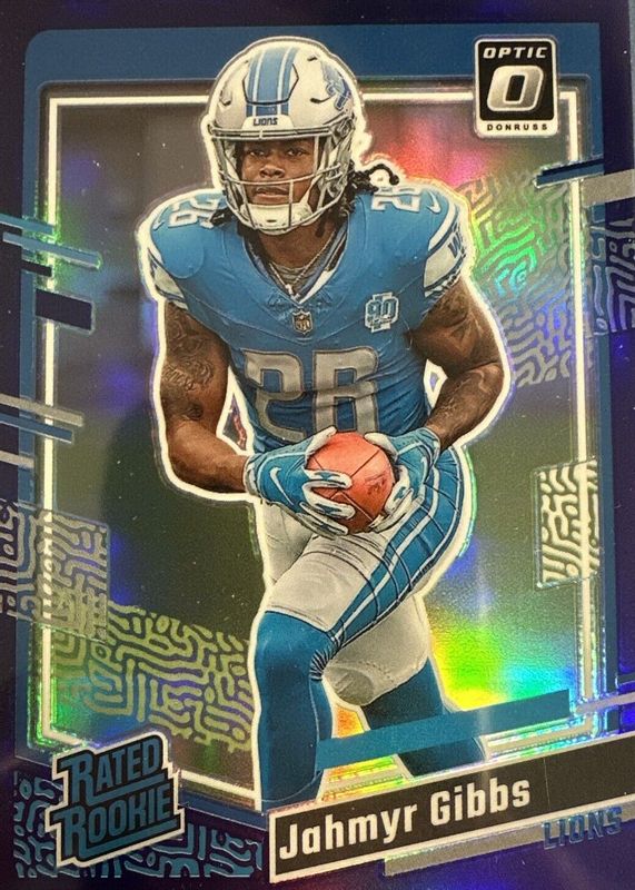 2023 Donruss Jahmyr Gibbs Optic Preview Purple Prizm Rated Rookie RC 15/50 Lions