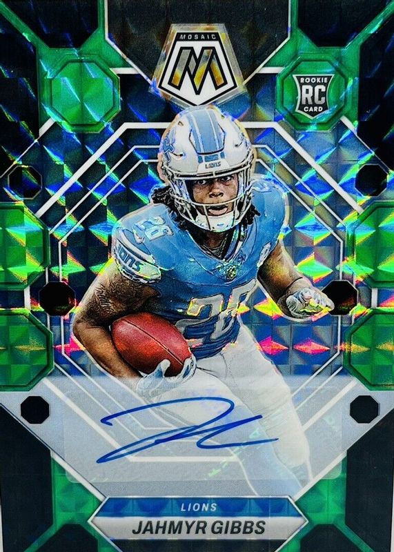Jahmyr Gibbs 2023 Mosaic #324 Rookie Autographs - Choice Fusion Green & Black /25 RAW Price Guide