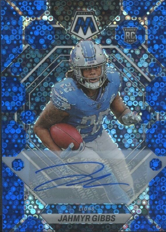 2023 Panini Mosaic Jahmyr Gibbs Rookie Auto No Huddle Blue RC #324