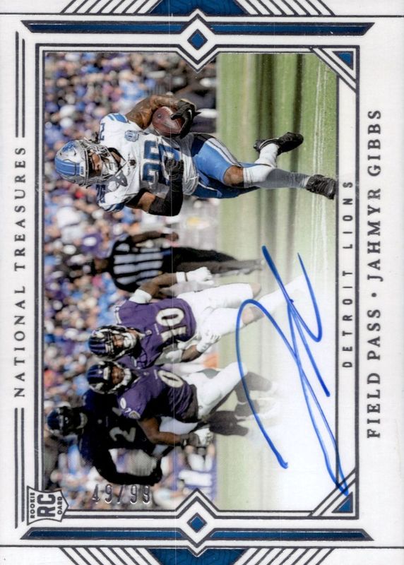JAHMYR GIBBS 2023 PANINI NATIONAL TREASURES ROOKIE AUTO FIELD PASS RC 33/99