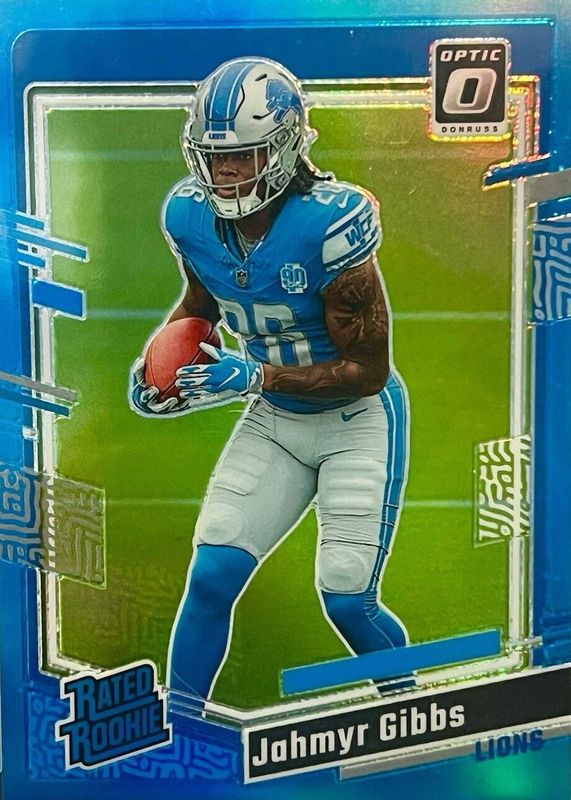 Jahmyr Gibbs 2023 Optic #236 Aqua /299 Rookie RAW Price Guide