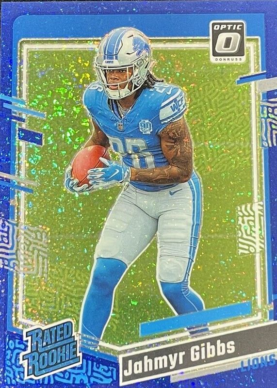 Recent Sales of Jahmyr Gibbs 2023 Optic #236 Blue Glitter /(SSP) Rookie Raw