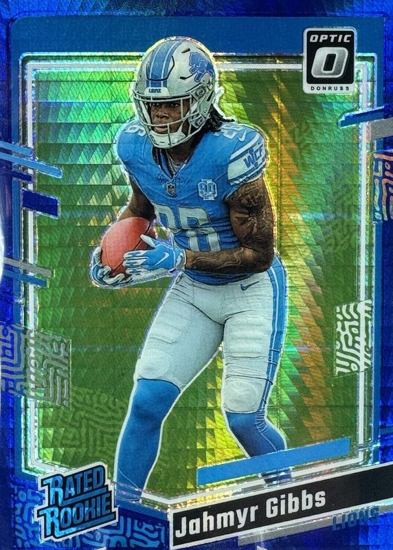 2023 Donruss Optic JAHMYR GIBBS Blue Hyper Prizm Rated Rookie #236 Lions